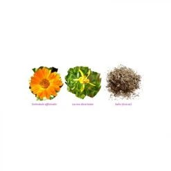 – Extraits de Calendula officinalis, aux vertus adoucissantes, cicatrisantes et anti-inflammatoires,